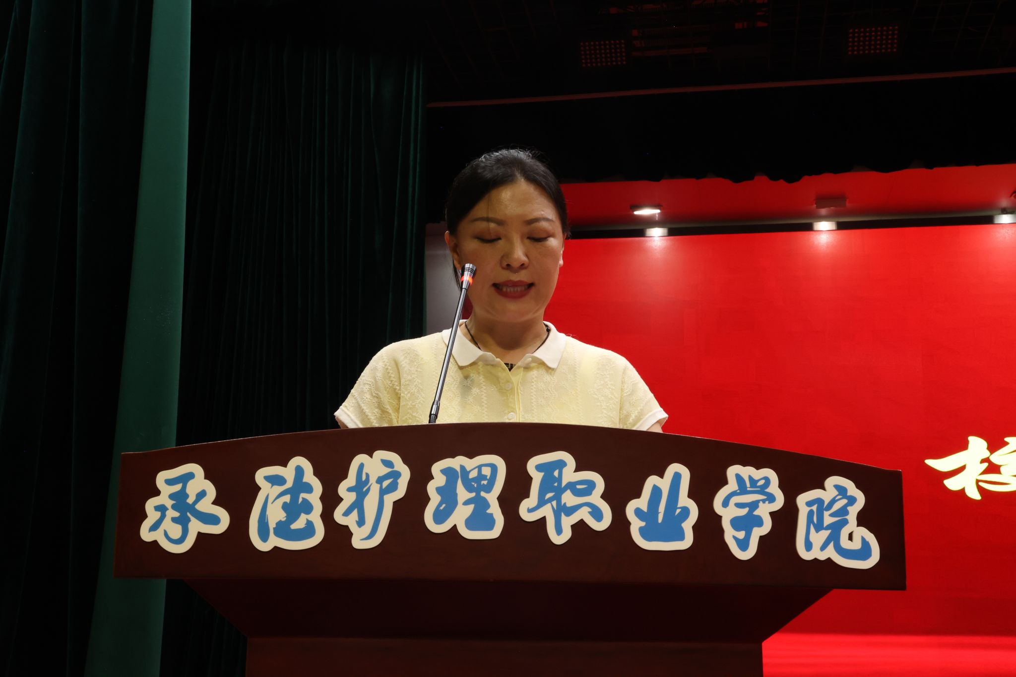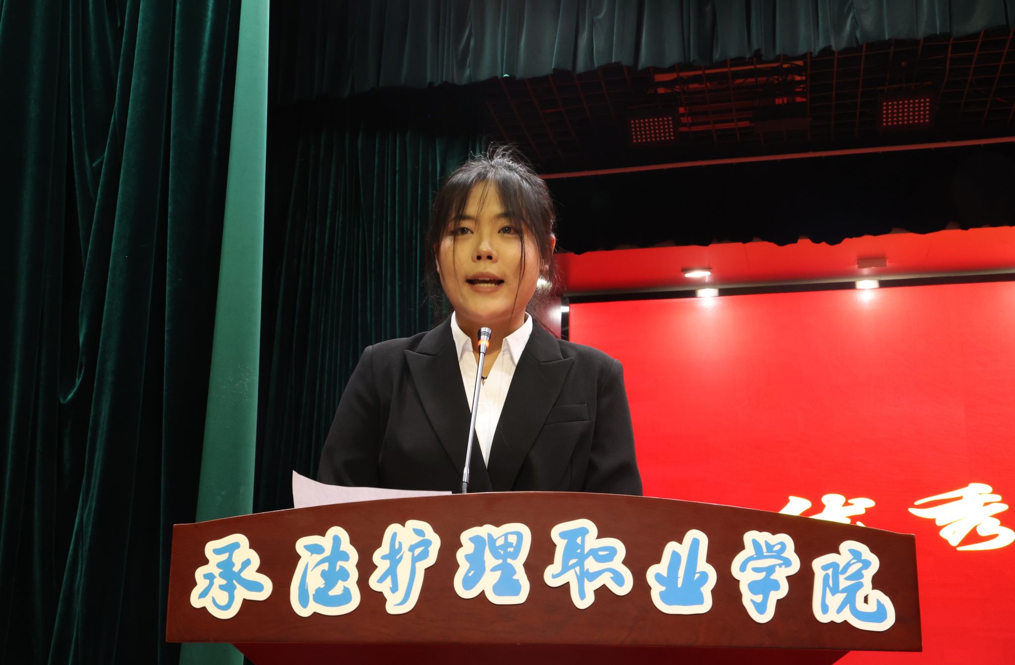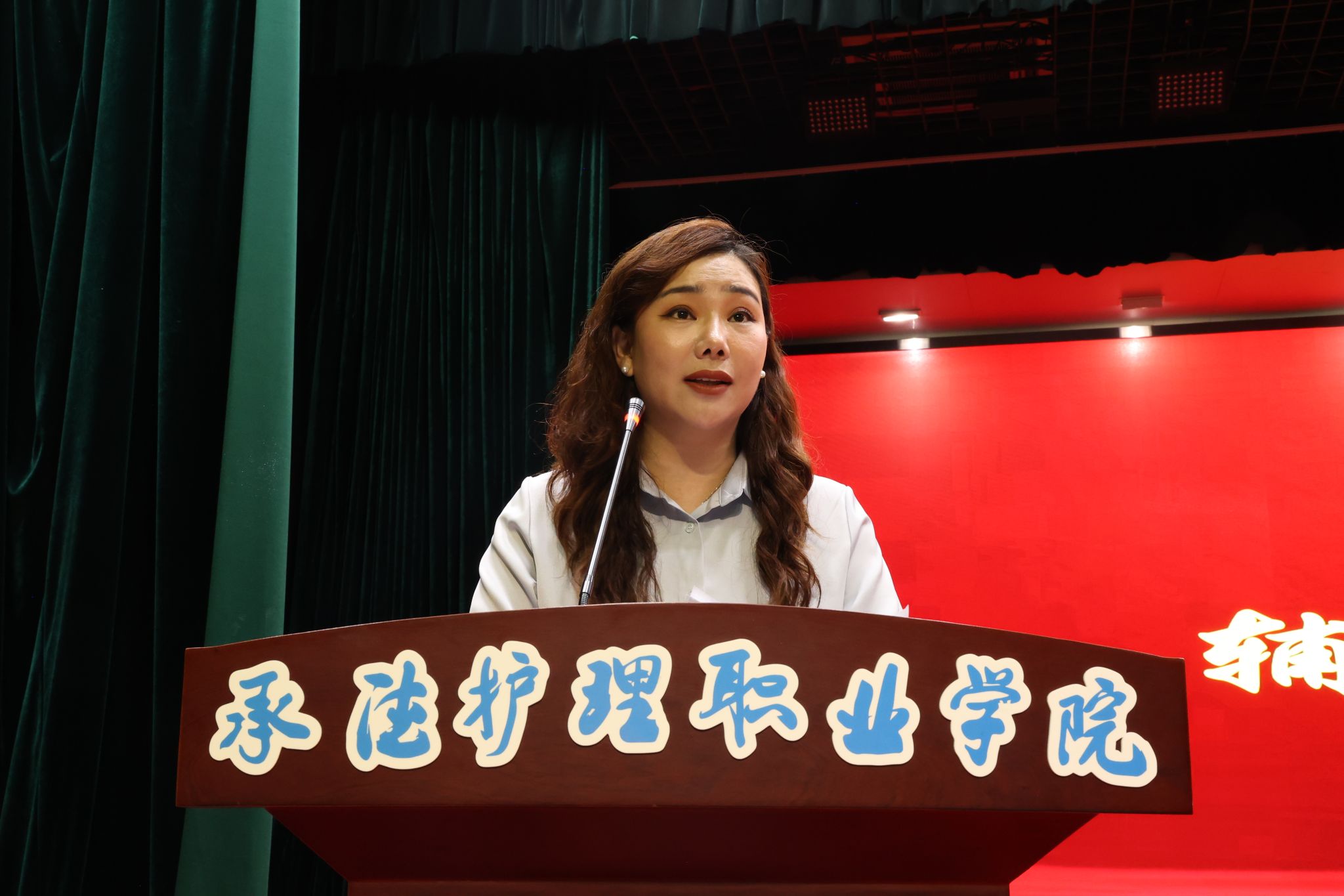 校友代表承德市康养医院护理部主任何智慧发言,她回忆了在学院的学习时光,分享了自己的成长经历和人生感悟,为学生带来职业启迪,同时,也为学院送上真挚的祝福。