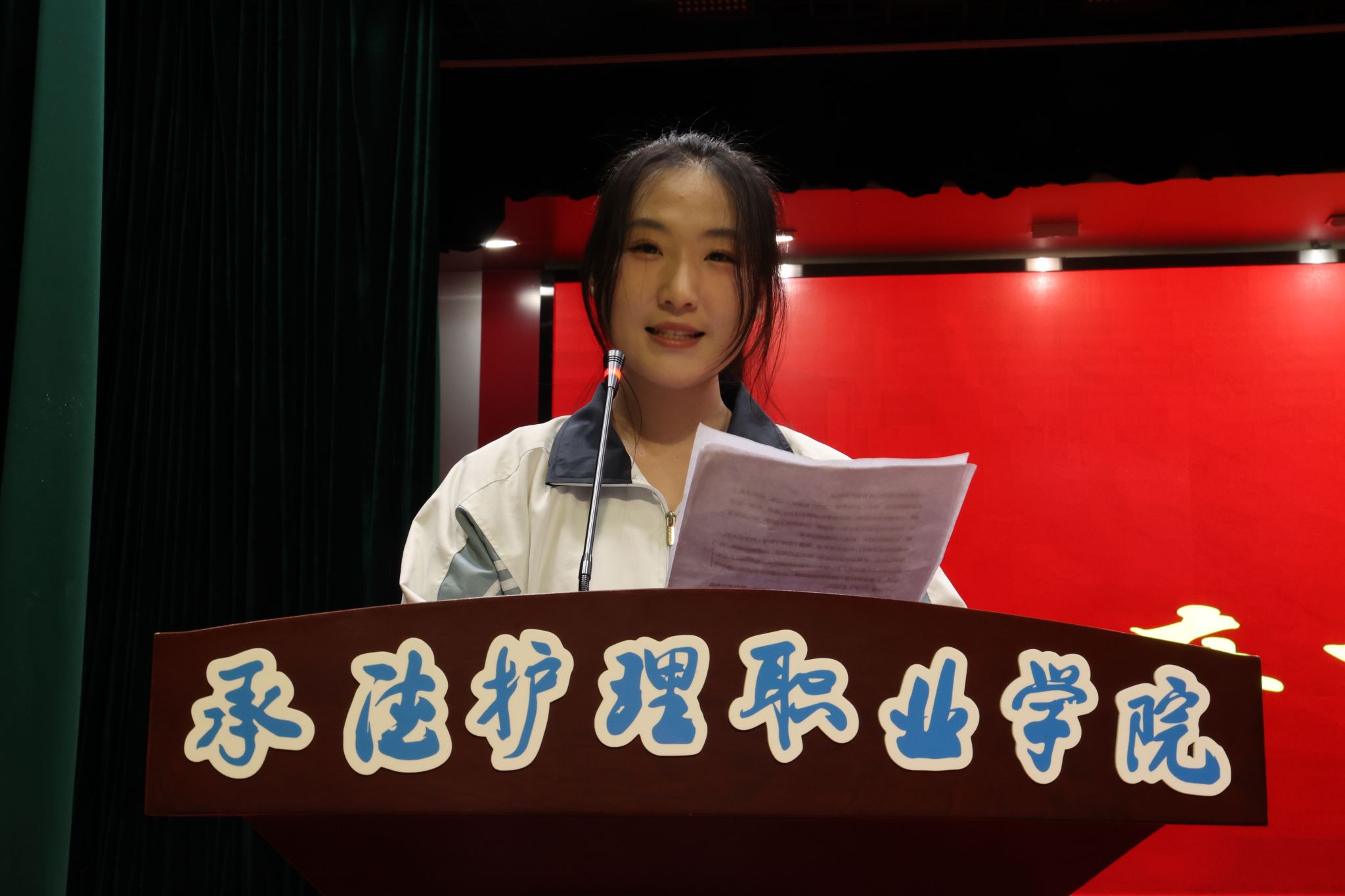 在校生代表护理系2024级护理11班王梓潇发言,她以优秀毕业生为榜样,表达了刻苦学习、早日成才的决心。