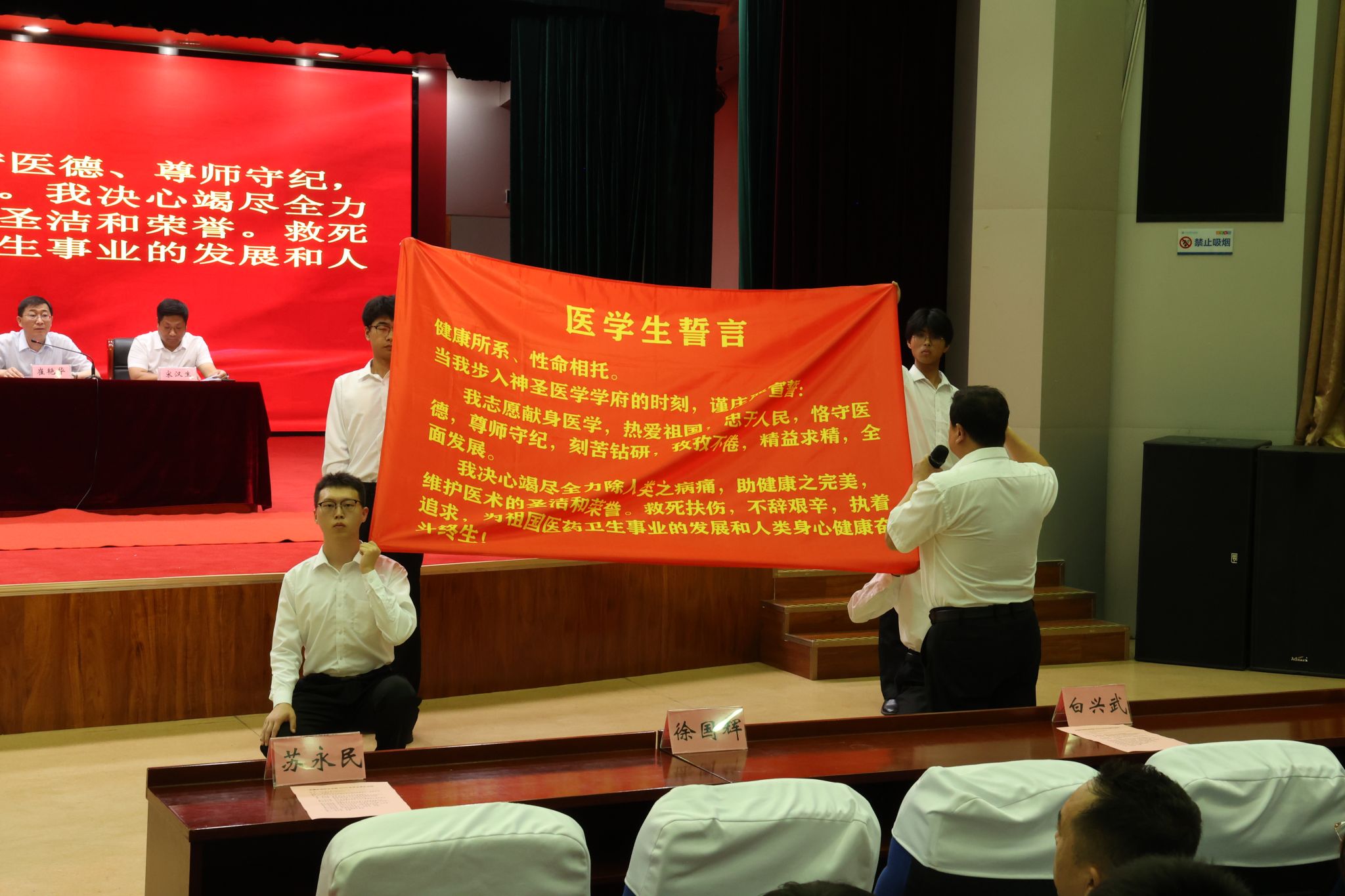 在医学系主任吕亮的领誓下,全体师生重温医学生誓词。