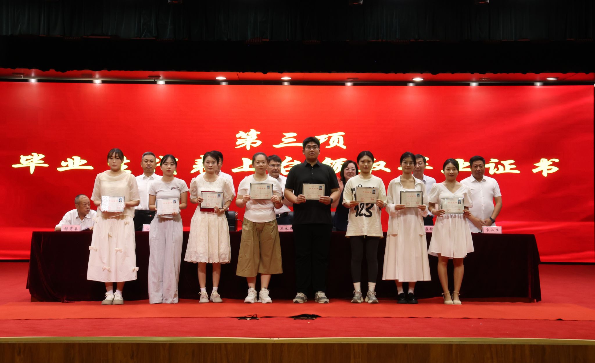 在嘹亮的国歌声中,毕业典礼正式拉开帷幕。副院长徐国辉宣读了《FUN乐天使官方网站关于准予2025届2110名学生毕业的决定》。副院长白兴武宣读了《FUN乐天使官方网站2025届省级优秀毕业生名单》。毕业生及获奖代表依次上台领取毕业证书与荣誉证书,他们的笑容中满是自豪与对未来的憧憬。