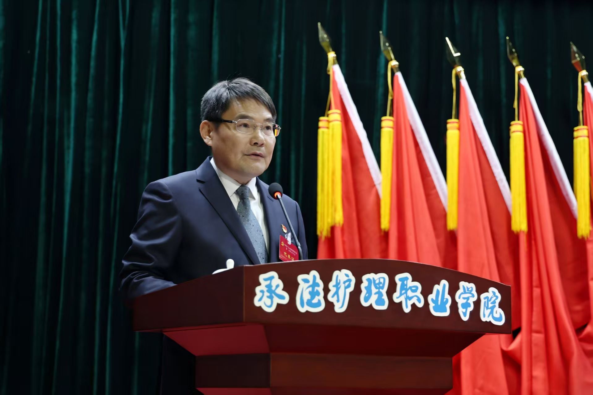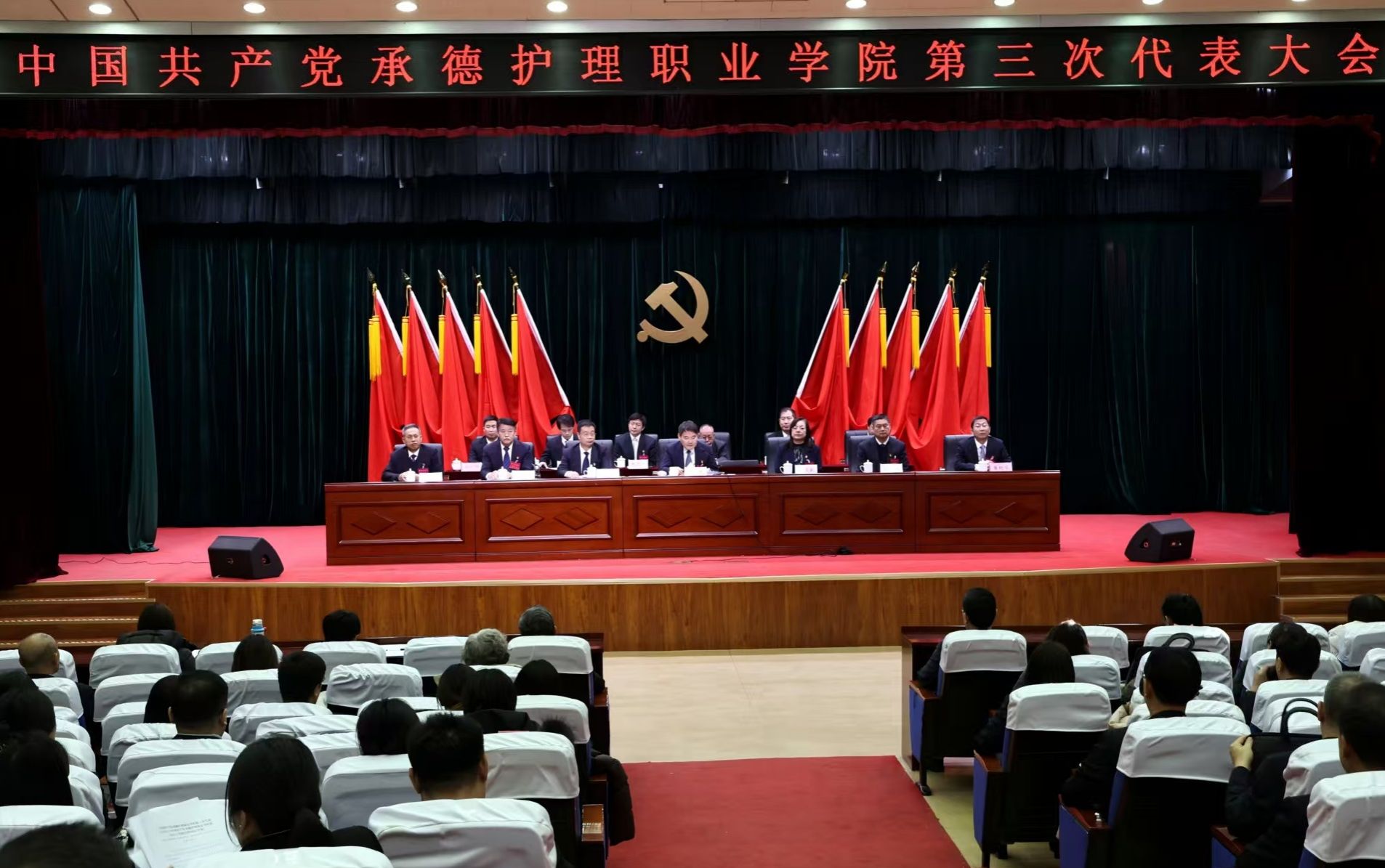 大会号召,全院上下要高举习近平新时代中国特色社会主义思想伟大旗帜,不忘初心,牢记使命,以永不懈怠的精神状态和一往无前的奋斗姿态,团结带领广大师生用奋斗拥抱新时代,用实干开启新征程,为建设特色鲜明区域领先的高水平护理职业学院而努力奋斗!