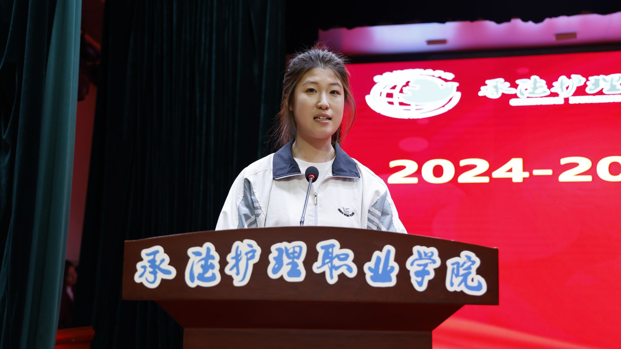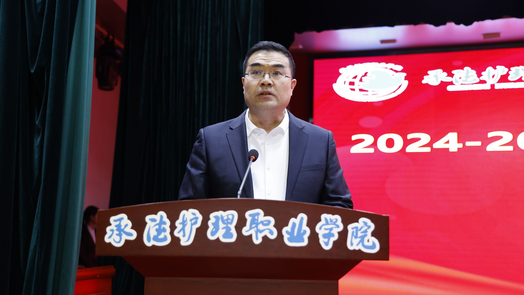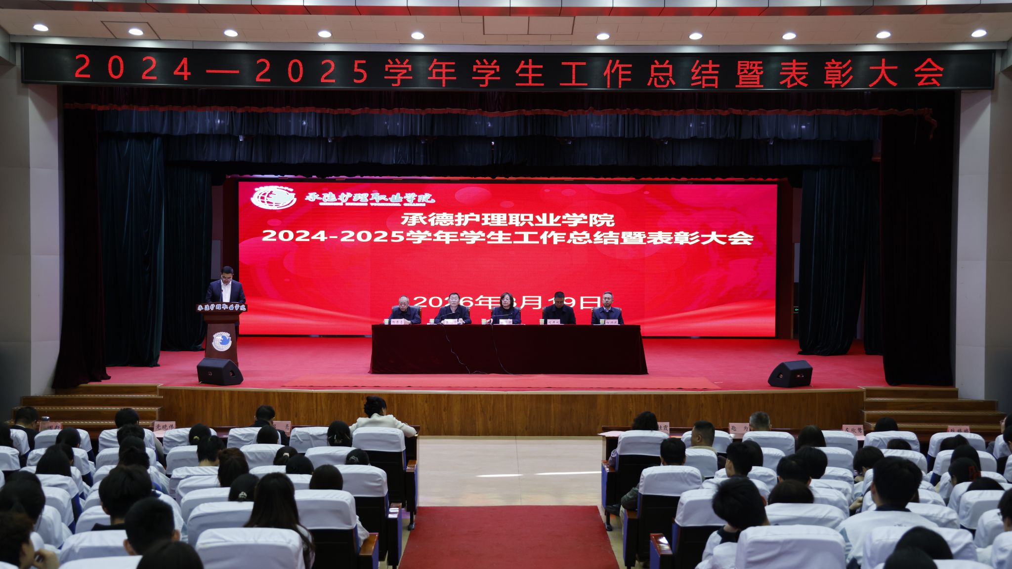 崔艳华在大会上号召全体师生以表彰大会为新起点,向先进典型学习,牢记“尚德、笃学、慎行、奉献”的校训,传承塞罕坝精神,努力成长为德技兼修的高素质医疗卫生技术技能人才,共同书写学院高质量发展新篇章。