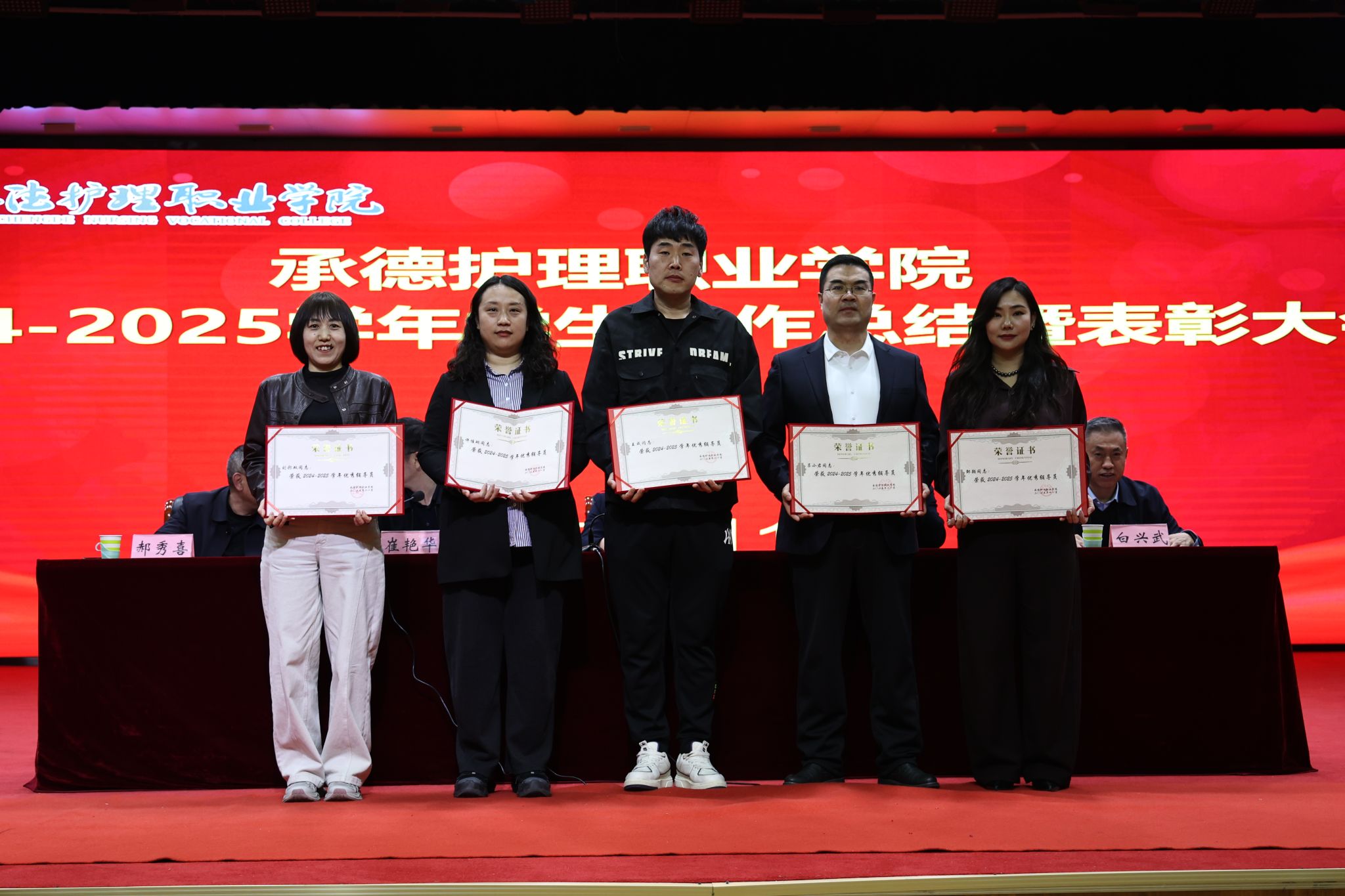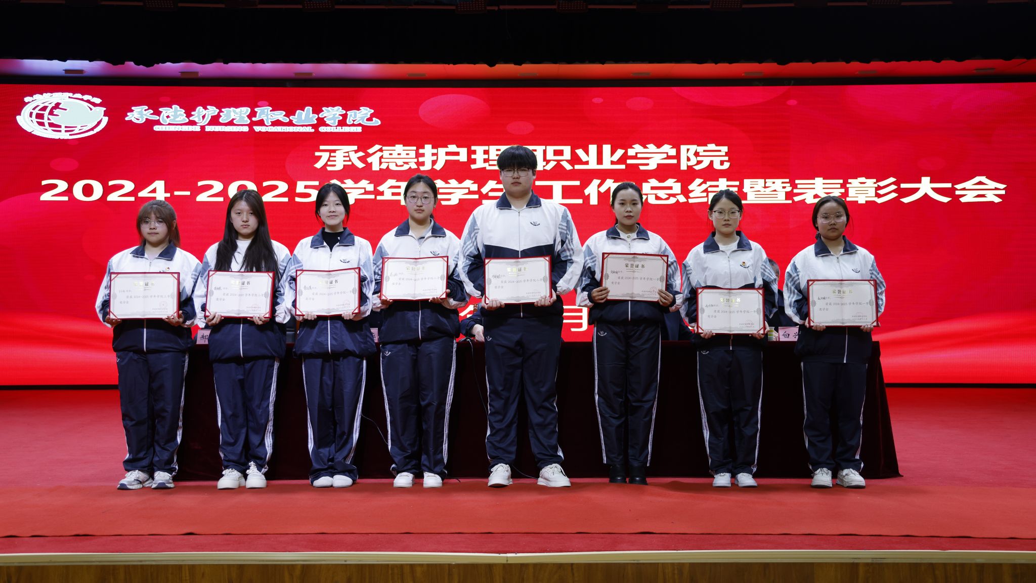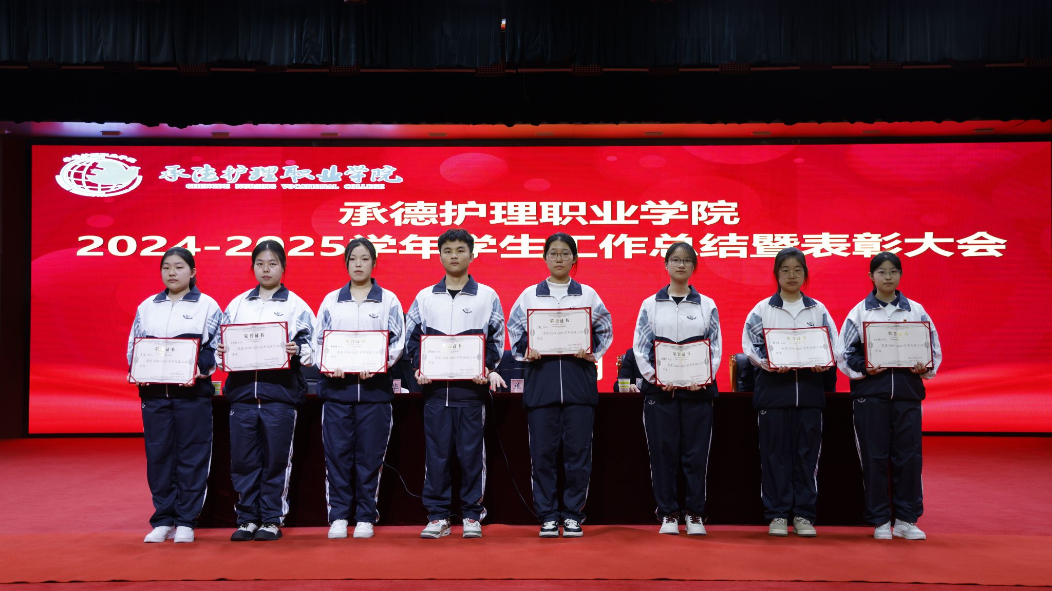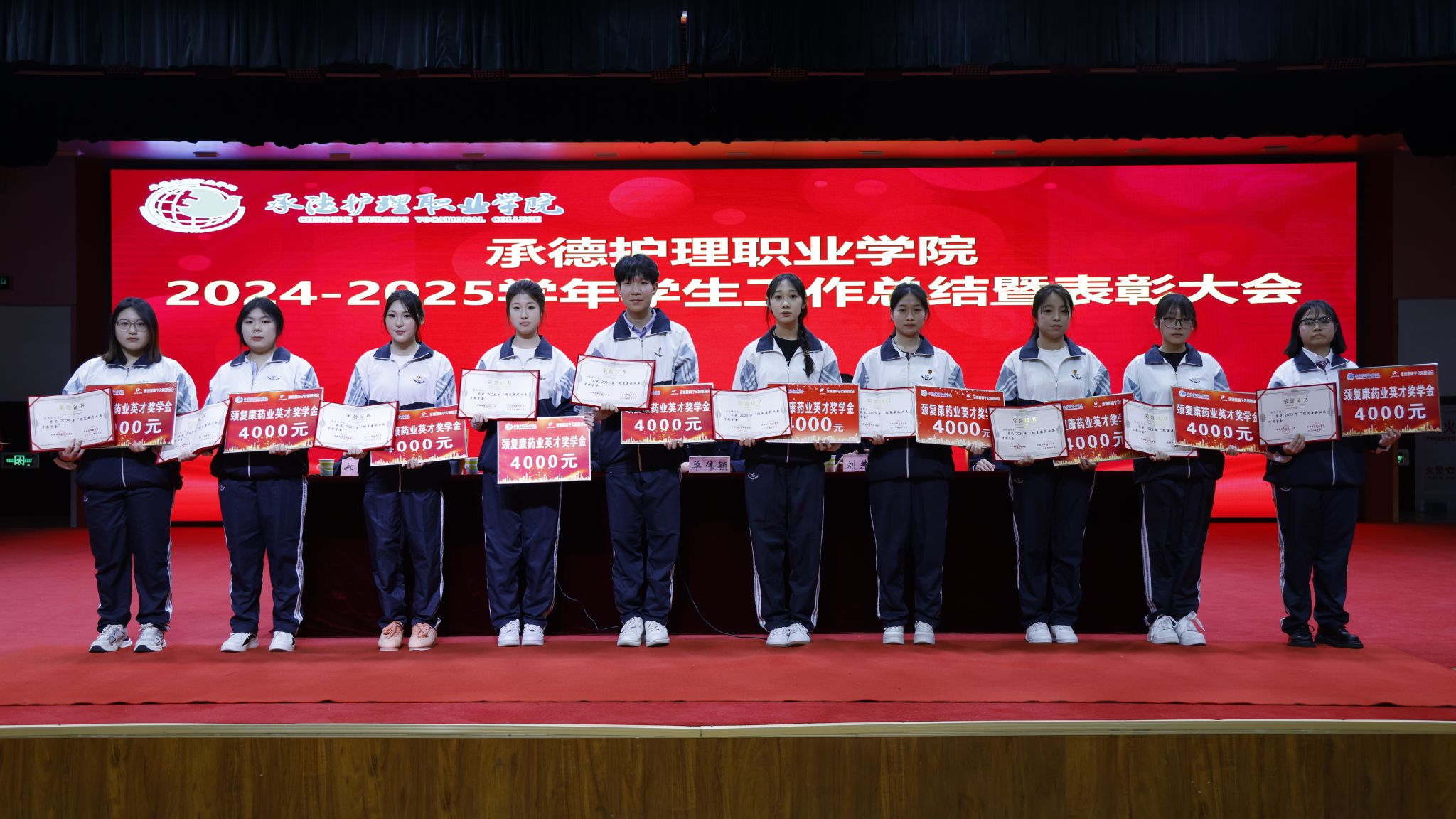 会上,学生工作部部长韩国新作《2025年学生工作报告》,系统总结了过去一年的工作成效与经验。崔艳华宣读表彰决定,对过去一年涌现出的先进典型进行集中表彰,涵盖三好学生、优秀学生干部、文明标兵、先进班集体、优秀辅导员(班主任)、国防教育和征兵工作先进个人、就业工作先进个人,以及国家奖学金、国家励志奖学金、院级奖学金、颈复康药业英才奖学金等各类获奖学生。单伟颖向承德腰痛宁公益基金会颁发资助荣誉证书。
