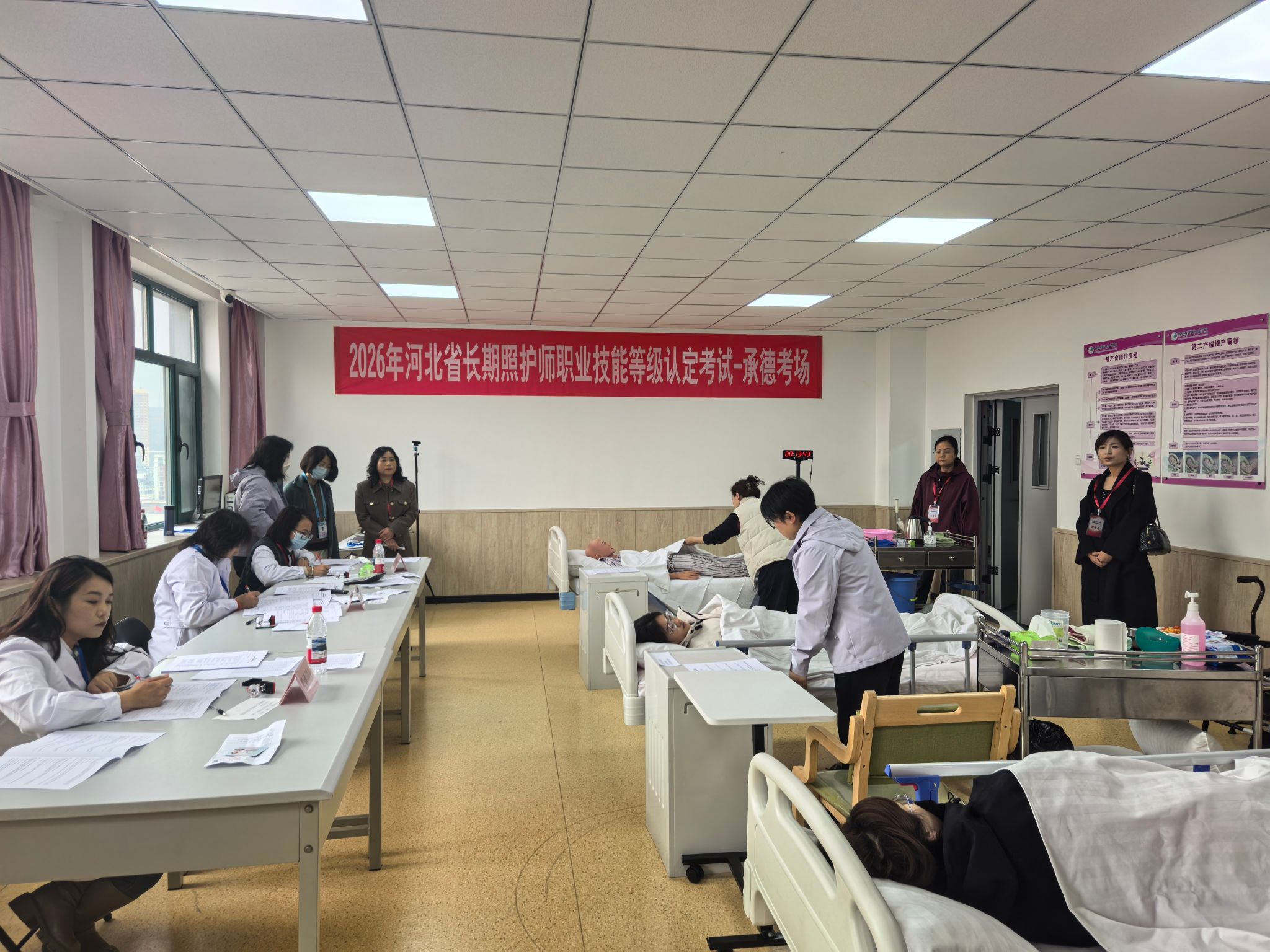 为深入推进我省长期照护师技能人才队伍建设,助力医养康养产业高质量发展,切实满足社会对专业化照护服务的实际需求,3月29日,我院作为河北省长期照护师职业技能等级认定考试省际联考承德考点,组织开展2026年首次长期照护师职业技能等级认定考试,共有148名考生参加。