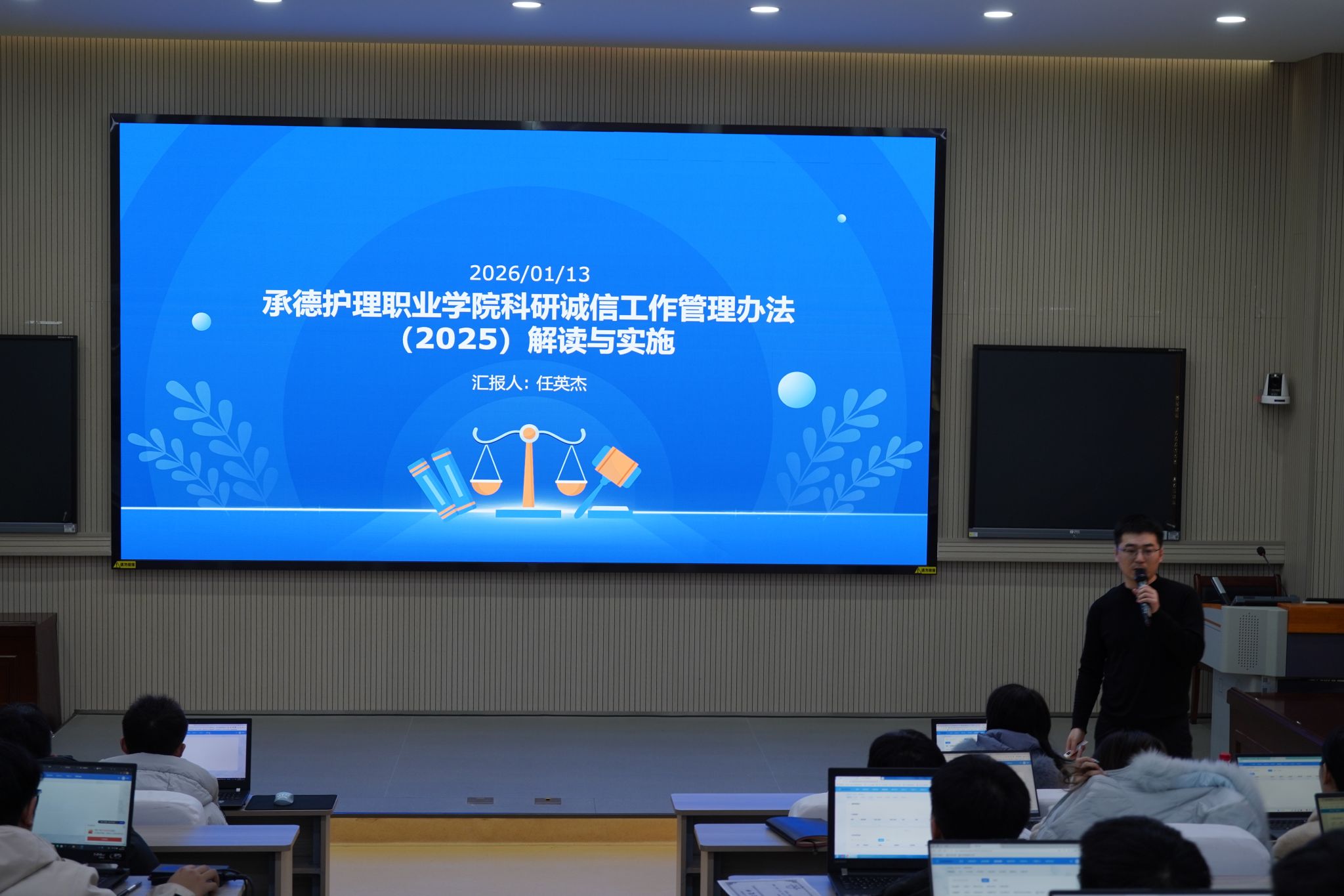 1月14日下午,FUN乐天使官方网站科研中心在1号教学楼一楼报告厅组织开展科研制度专题培训会,进一步规范学院科研管理工作,强化教职工对科研相关制度的理解与实施,提升科研工作规范化水平。