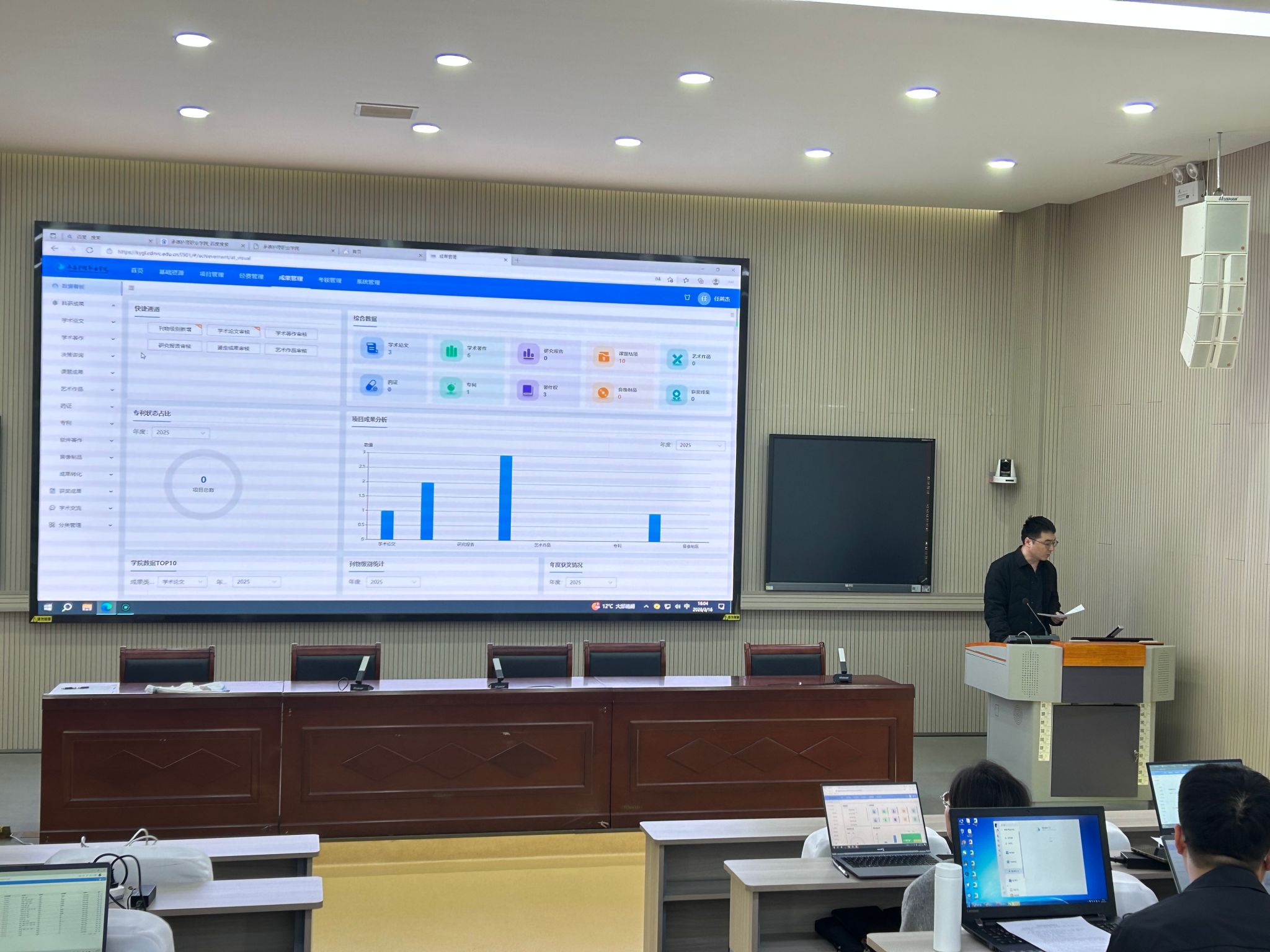 培训会上,任英杰老师围绕系统成果填报审核注意事项(论文、学术著作、专利、软件著作等各类成果的填报规范、分级标准及附件上传要求)、审核相关问题(纵向、横向、校级项目登记流程、录入范围界定)等核心内容进行了详细讲解,针对已填报项目审核中的重点难点进行了专项说明。