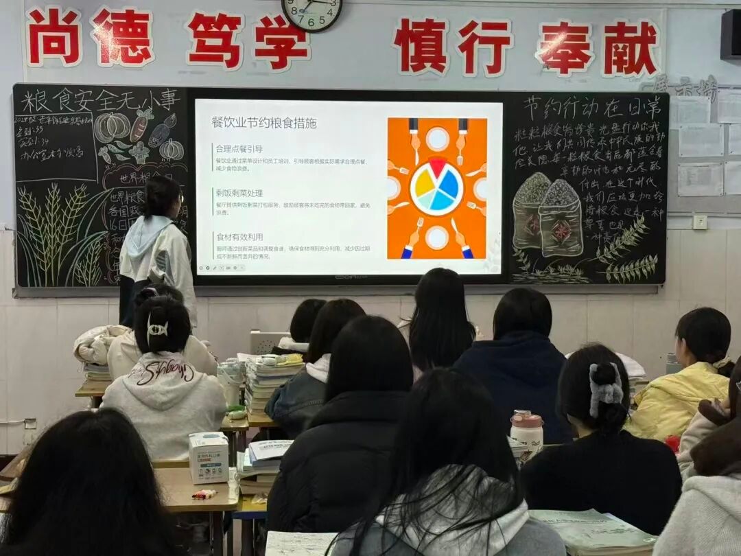 班会明确,节约粮食需落实到日常行动中,包括按需取餐、践行“光盘行动”、合理采购储存食物、减少零食开销、宣传节约理念等。