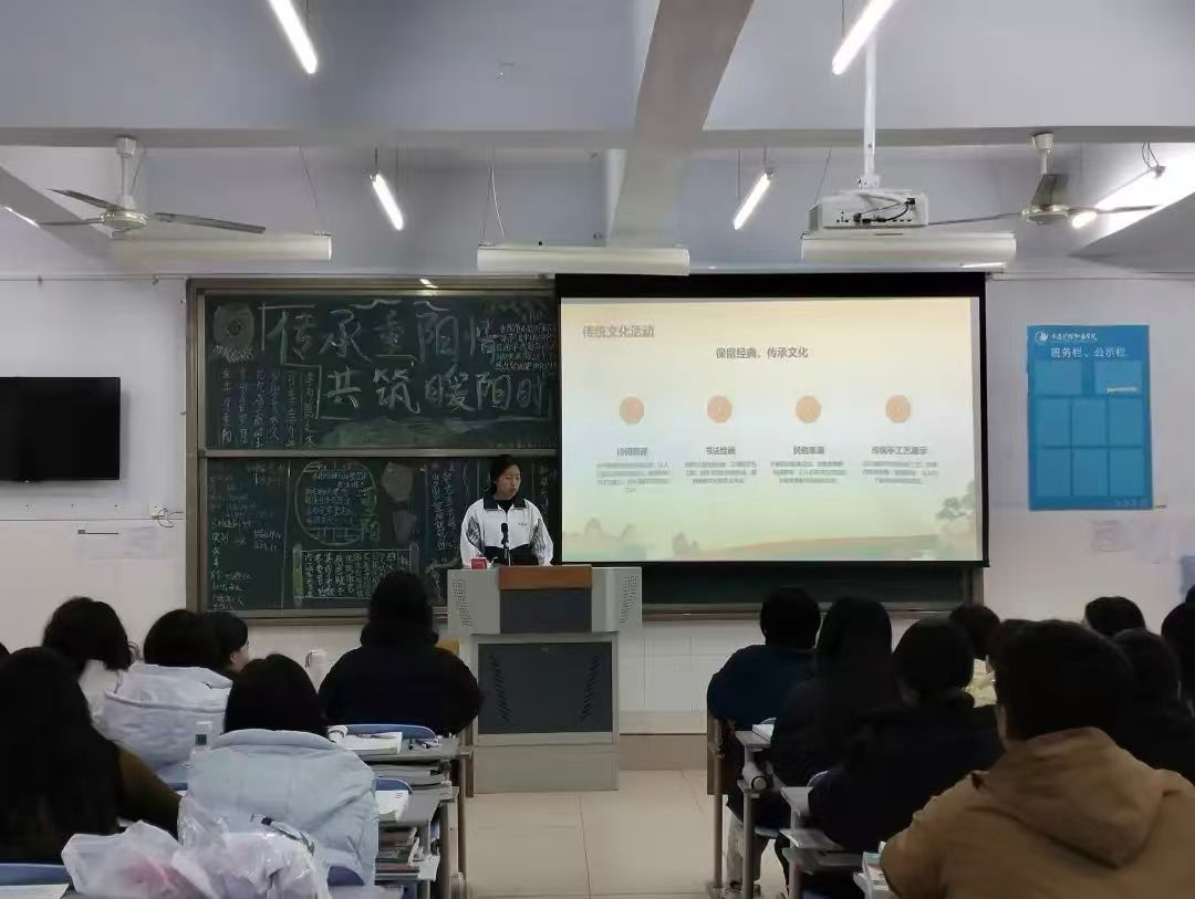 为厚植中华传统文化根基,2025年10月29日,乐天使官网涉外护理系在各教室开展“传承重阳情,共筑暖时光”主题班会。