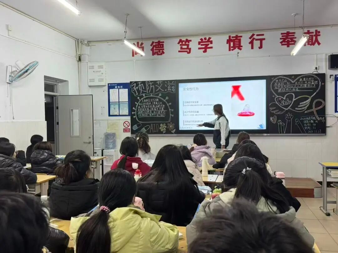 活动中,主讲人通过PPT宣讲、案例解析等形式,系统阐释了艾滋病的医学定义、传播途径及防治核心要点,重点澄清了“日常接触会感染”等认知误区,强调性接触、血液、母婴是主要传播途径,引导大家树立“自我健康第一责任人”理念。现场参与热情高涨,让同学们在轻松氛围中巩固了防艾知识。此外,活动还组织观看防艾宣传视频,通过真实故事传递对艾滋病患者的包容与关爱,呼吁摒弃歧视、平等相待。