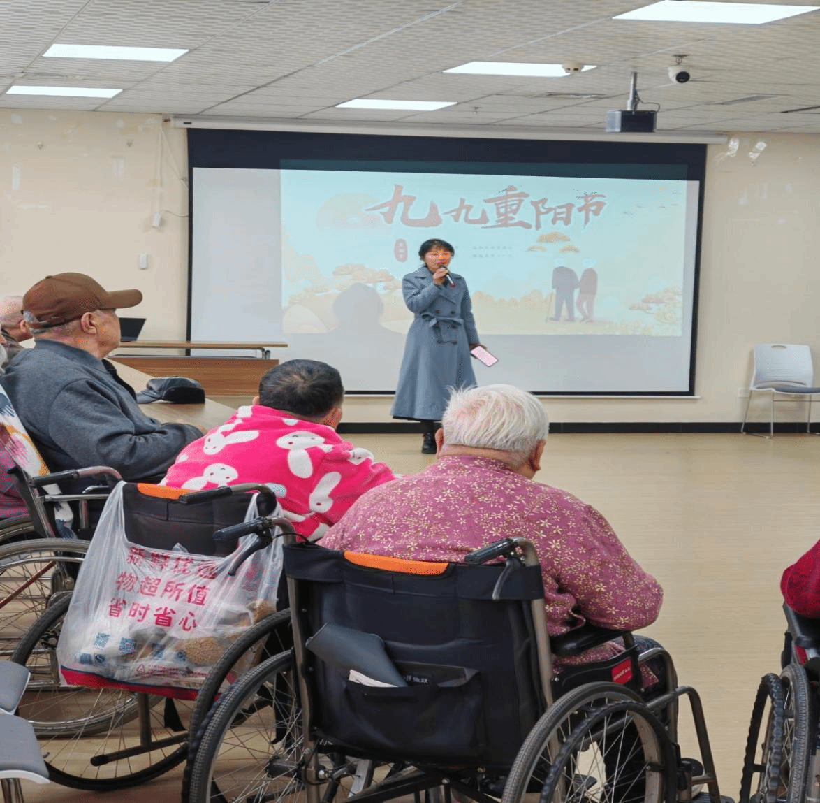 活动伊始,系主任秦博文向康养中心的老人们致以节日的问候。她表示,护理系党总支始终坚持“党建引领、专业赋能、服务社会”工作宗旨,鼓励师生党员在实践中锤炼党性,在服务中践行初心。