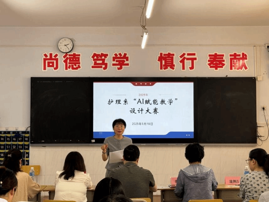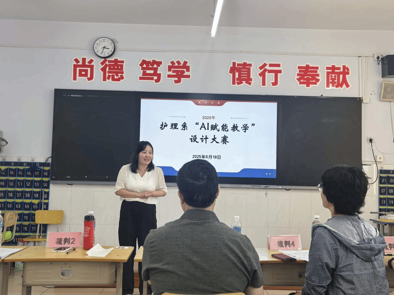 为积极响应国家教育数字化战略部署,深入推进人工智能技术与护理教育教学的深度融合,护理系于6月18日下午在6301教室成功举办了“AI赋能教学设计大赛”。