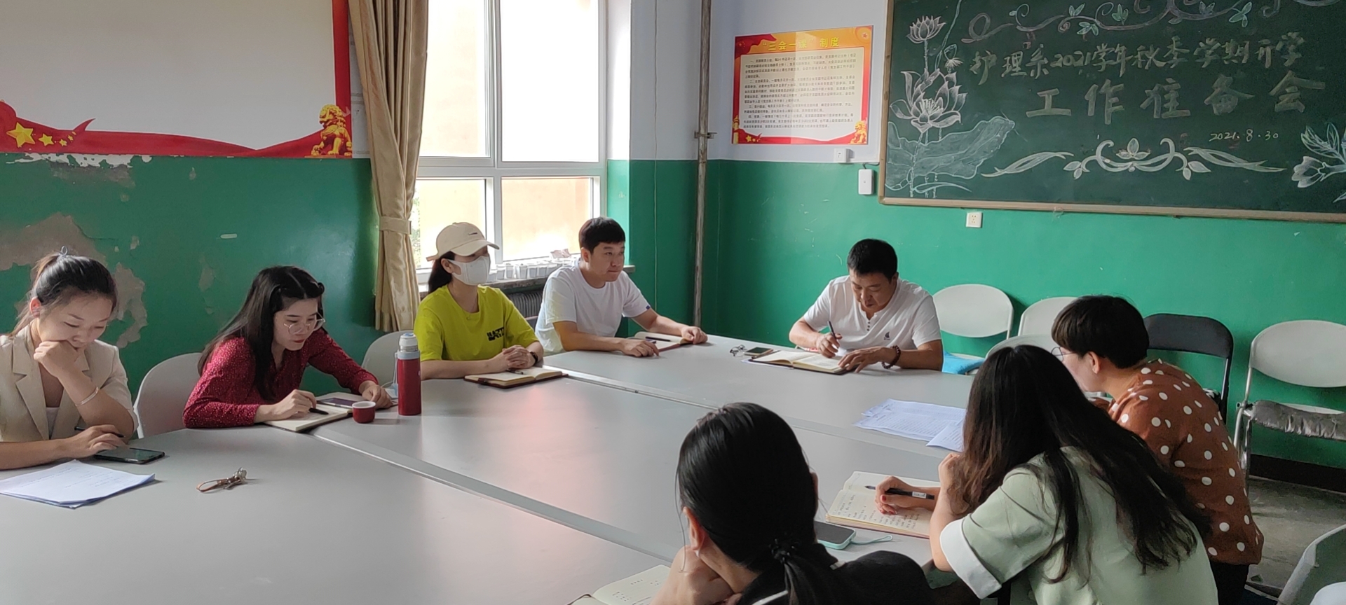 8月30日上午,护理系召开疫情防控工作会暨2021年秋季学期开学前相关工作准备会议。护理系主任马秀芬、系学管干事、辅导员参加,会议由护理系党总支书记韩国新主持。