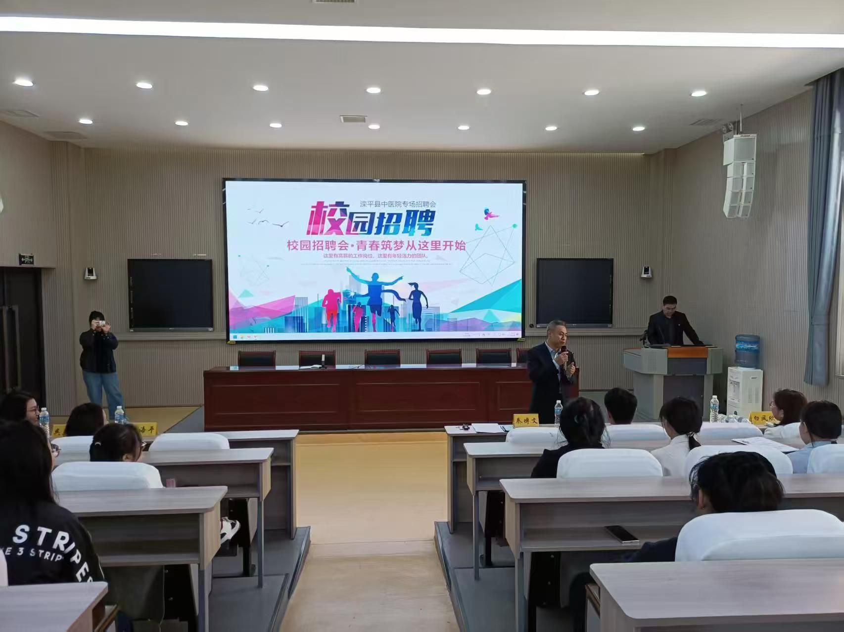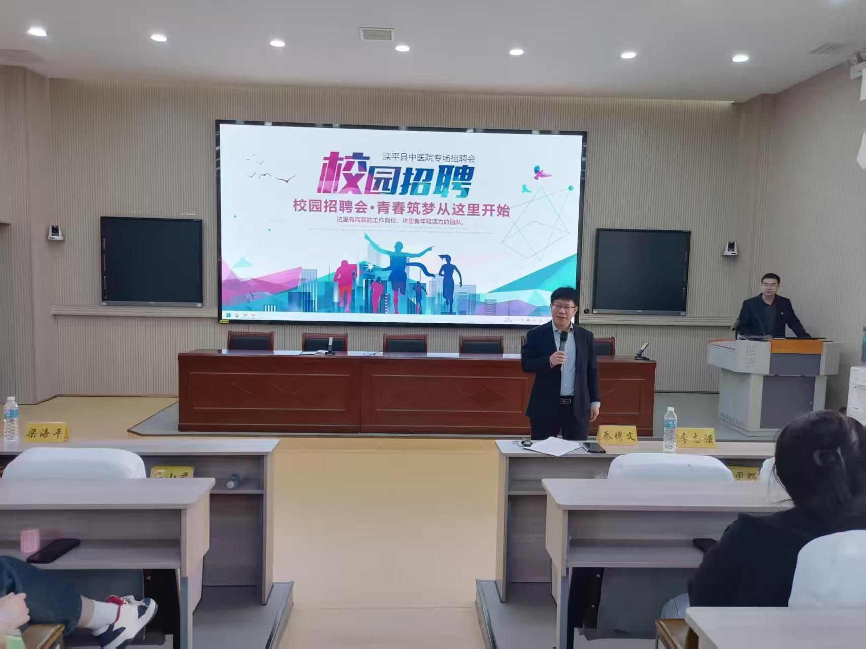 招聘现场,滦平中医院副院长白凤欣通过PPT汇报展示了医院环境、职业晋升通道及福利待遇,详细介绍了岗位要求:需具备扎实的护理专业知识、执业资格证优先,注重人文关怀与团队协作能力,吸引众多学生咨询。