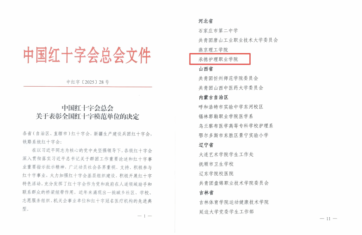 2025年11月18日,中国红十字会总会正式公布“2025年全国红十字模范单位”表彰名单。学院凭借在人道主义服务、应急救护体系建设、志愿服务创新等重点领域的突出表现,从众多候选单位中脱颖而出,成功斩获这一国家级荣誉。这一称号既是对学院长期践行“人道、博爱、奉献”红十字精神的充分肯定,更是对学校整体社会责任履行能力与公共服务水平的高度认可。