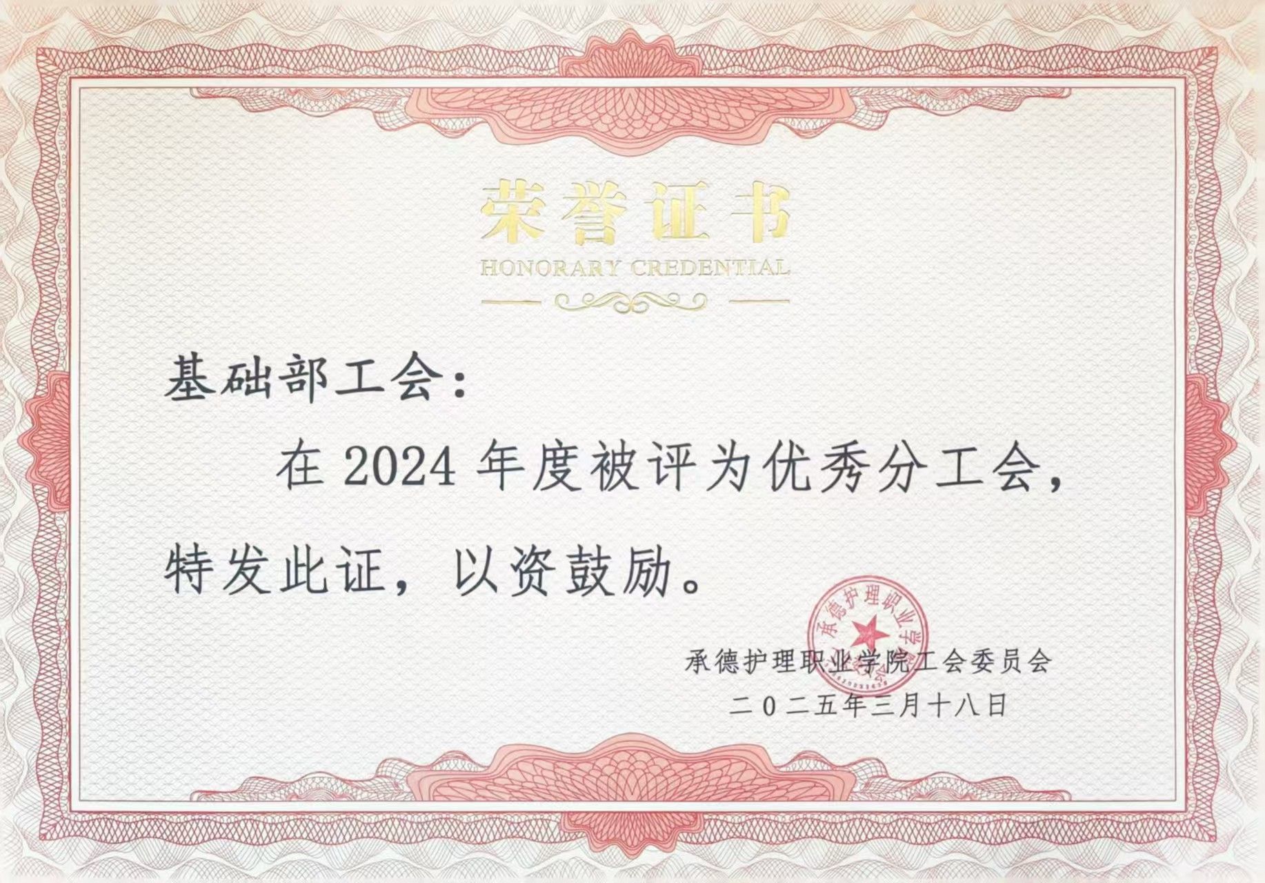 本部被学院评为2024年优秀分工会。