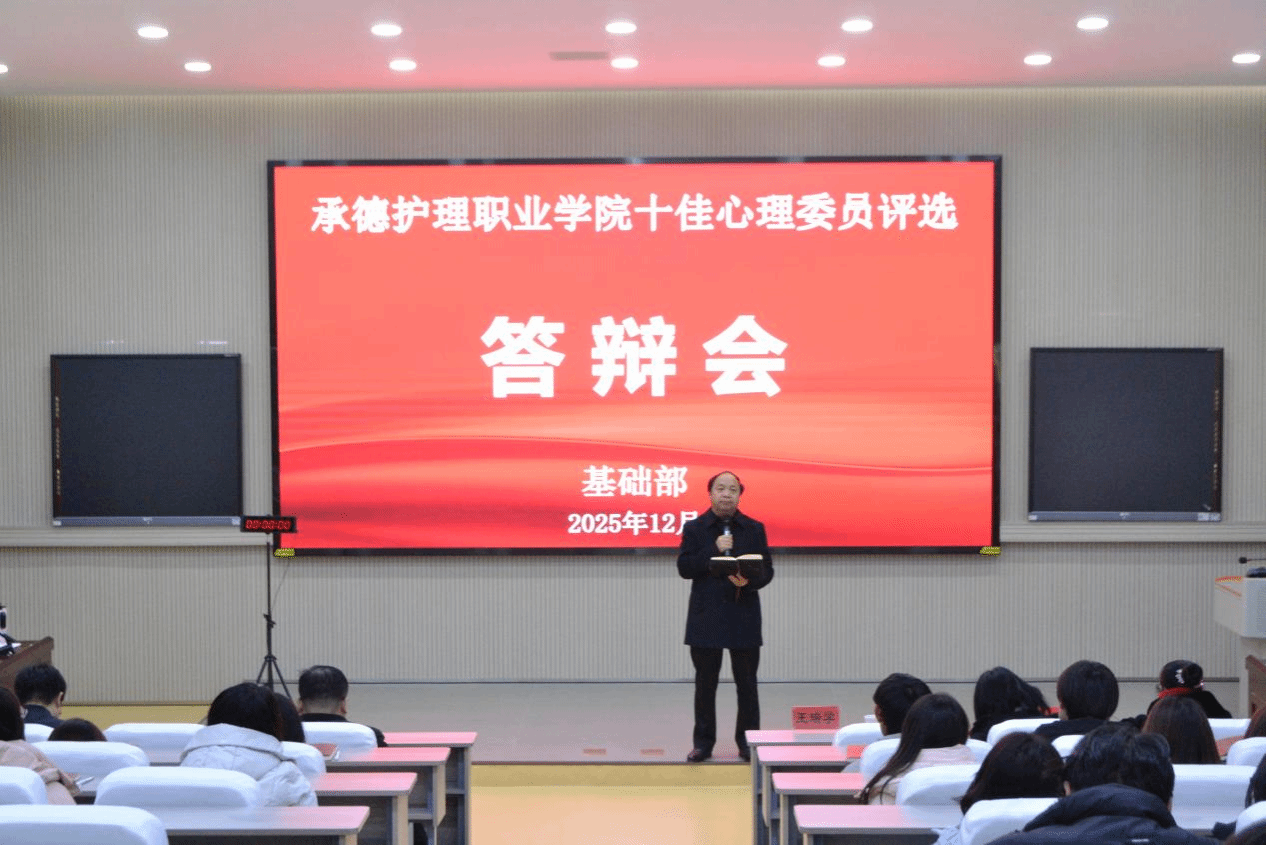 为进一步加强班级心理委员建设,充分发挥大学生心理委员在朋辈辅导、同伴教育中的重要作用,推动班级心理健康文化的发展,在心理委员队伍中树榜样、立典型。基础部于2025年12月4日下午在1号楼演播厅召开FUN乐天使官方网站十佳心理委员答辩会,基础部主任王瑞学、各系心理负责人、心理委员代表及学生代表共120余人参加活动。