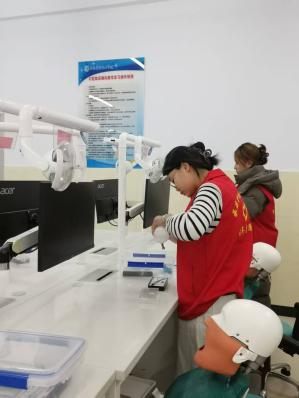 在实验室老师的专业指导下,我们根据口腔实验室的特点,精心分组展开工作。器械组的同学们小心翼翼地擦拭着牙科治疗椅的每个角落,从光纤导管到痰盂系统,从手机接口到灯罩表面,不放过任何一个细节。模型组的同学则认真整理着各类牙齿模型,将颌骨标本、牙列模型按教学要求重新归类摆放。环境组的同学更是发挥医学特长,对实验室进行分区清洁消毒,特别是操作台面、门把手等高频接触区域。