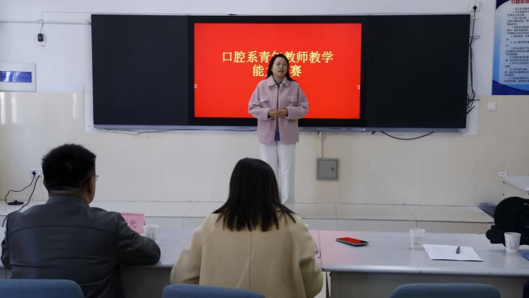 2025年11月21日下午,口腔系精心组织的青年教师教学能力比赛顺利举行。本次比赛由口腔系副主任王美艳主持,邀请医学系副主任刘娜、医学技术系副主任岳伟光担任专业评委,口腔系全体青年教师踊跃参与,以赛为媒展现教学风采,以评促改提升教学能力。