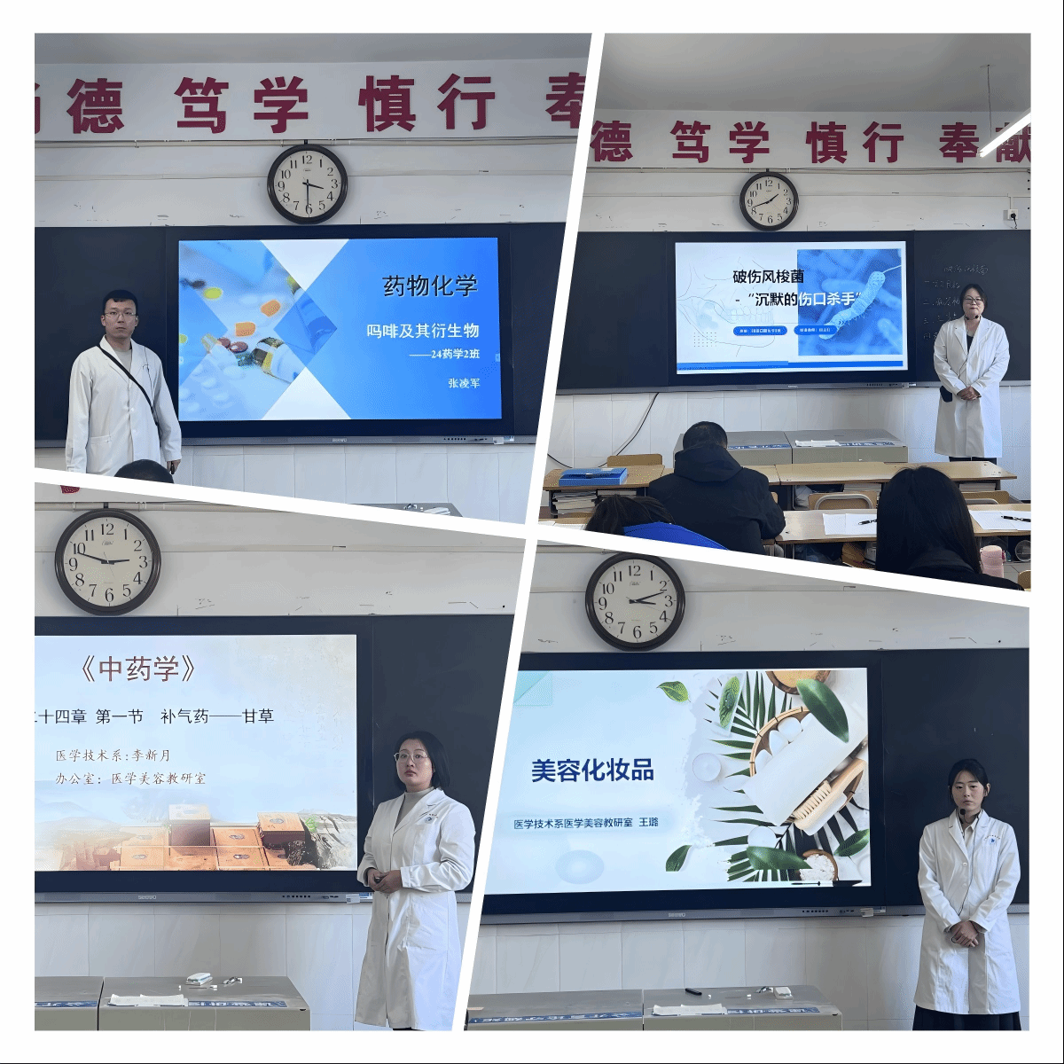 本次比赛紧扣医学技术学科特色,以“夯实教学基础、创新教学方法、提升育人实效”为核心目标。前期经过系部精心筹备,制定了涵盖教学设计、新课讲授、课程思政等多维度的科学评分标准。比赛采用 “无生授课” 的形式,要求参赛教师在15-20分钟内完成指定教学内容的展示,全面考察其教学目标把控、教学环节设计、专业知识传授及课堂互动引导等综合能力。医学技术系8名来自各教研室不同专业方向的青年教师同台竞技,各展所长。