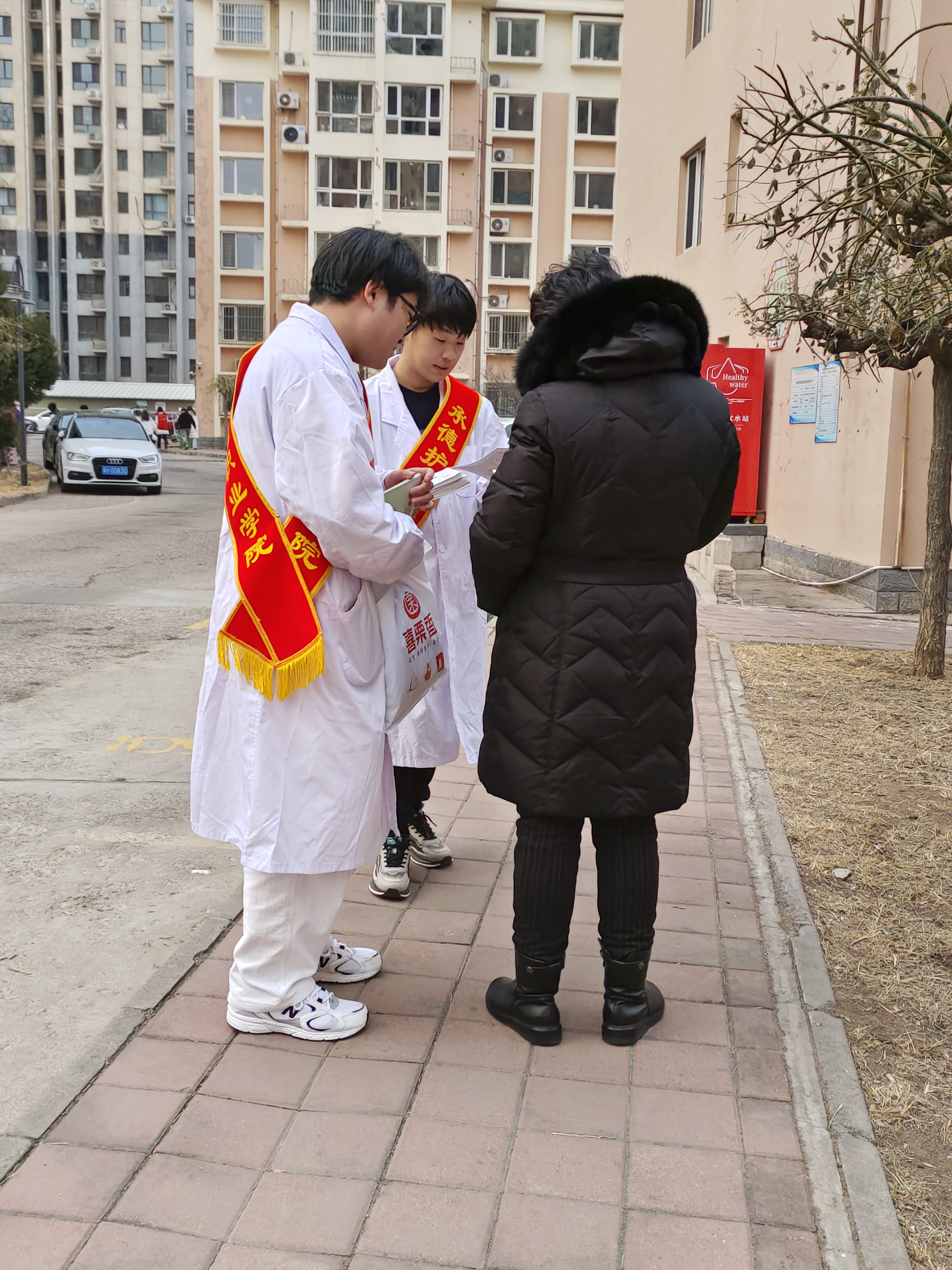 中医药文化社团的师生为小区居民发放科普宣传单,进行医药卫生健康知识科普,并利用所学知识,耐心解答居民问题,做好用药指导和健康宣教。